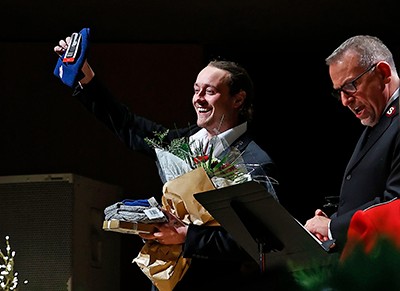 Before the concert’s final sequence, Lt-Colonel Les Marshall, territorial secretary for mission and emcee for the evening, returned to the stage to express heartfelt thanks to Hastings, who was born in Belfast, Northern Ireland. He presented him with Toronto Maple Leafs toques for his children, who were in attendance along with the rest of Hastings’ family. The exchange was lighthearted, drawing warm laughter and applause from the audience.
