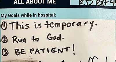 During his time in the hospital, David’s son, David Jr., put together a family Bible study to help keep the family hopeful and focused on Jesus. At the end of each lesson, they recorded what they learned on a white board in David’s hospital room.