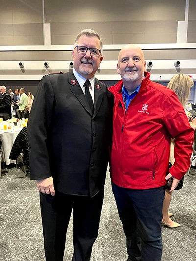 Mjr Rick Zelinsky, director of public affairs and EDS, with Ted Troughton, managing director of National Recycling Operations, at the National Prayer Breakfast
