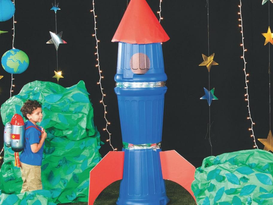 Add a cosmic balloon arch or some giant rocket balloons to a starry sky backdrop and easily transport your kids into outer space.