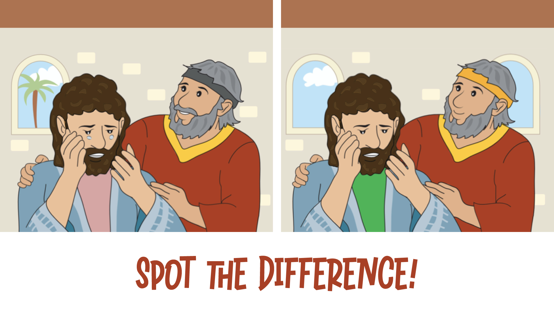 Activity: Display the "Spot the Difference" slide (HERE) on screen and have kids work together to spot all 8 differences between the two pictures of Saul and Ananias.