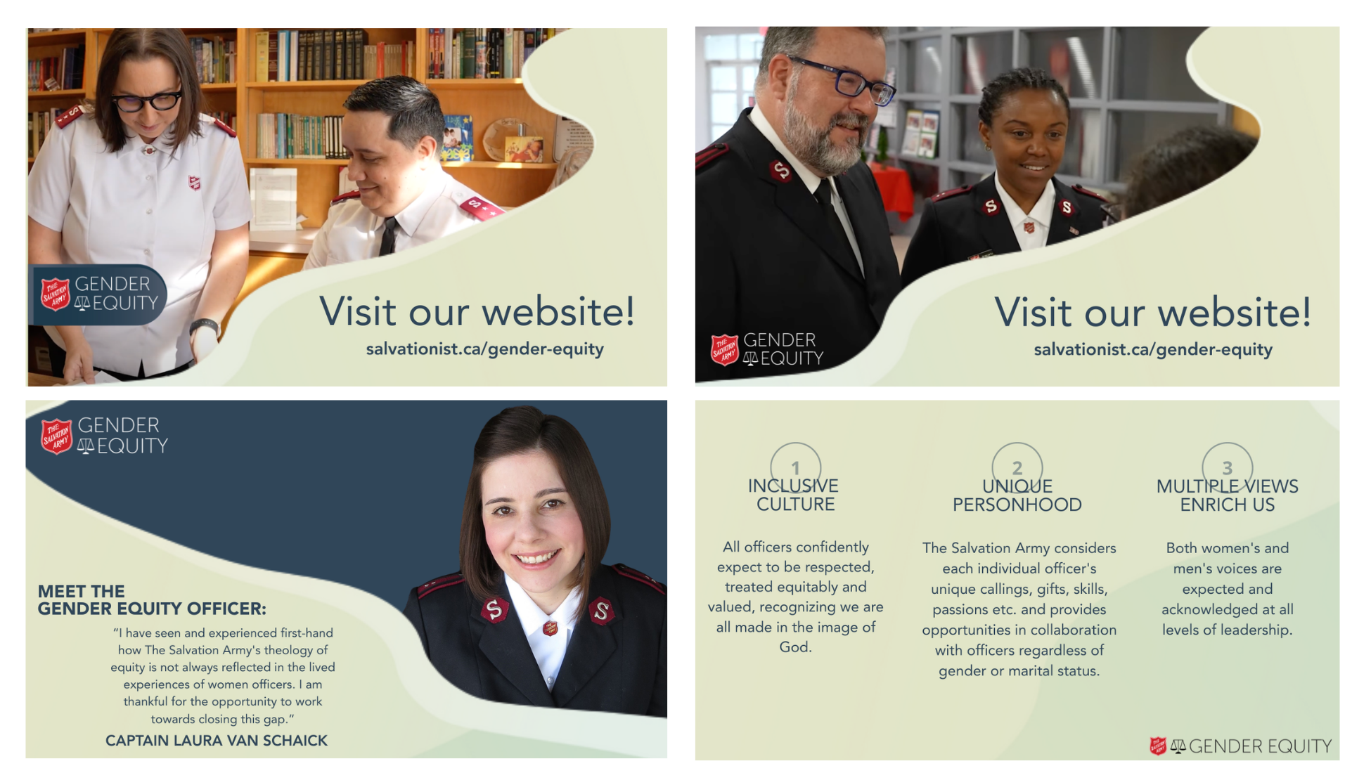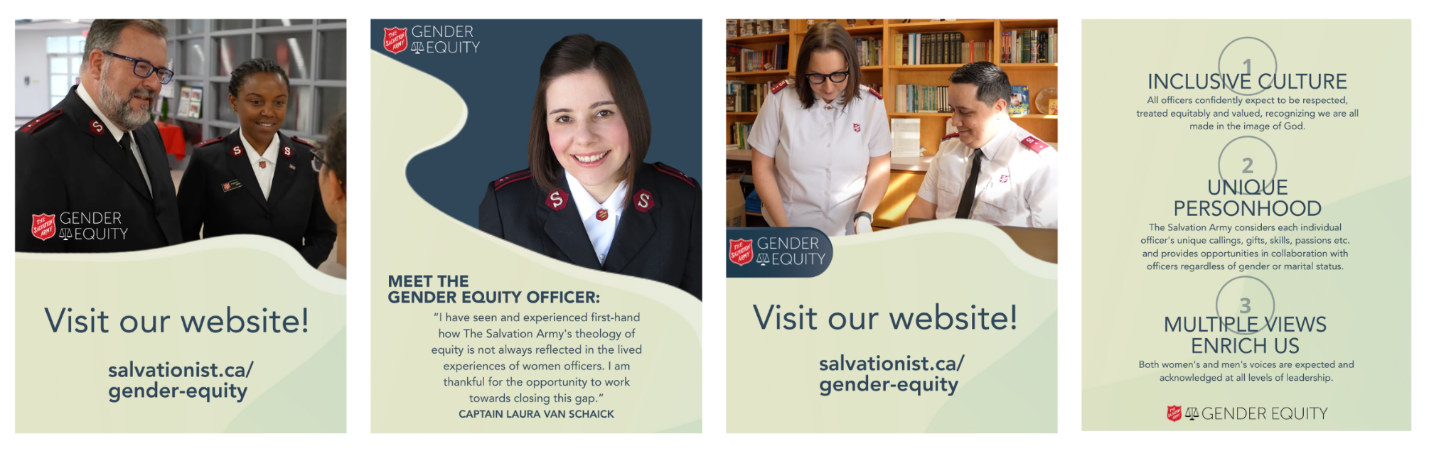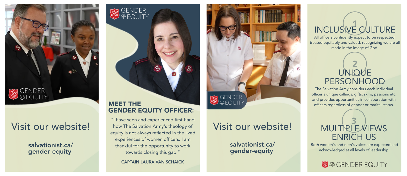 By Captain Laura Van Schaick Gender EquityImagine a balancing weighing scale with a red Salvation Army shield in the middle. One side of the scale is marked “women” while the other side is marked “men.” The goal is for the scale to be balanced. To achieve this, both women and men need to be equitably equipped for mission, recognized for their giftings, and feel seen and heard by their