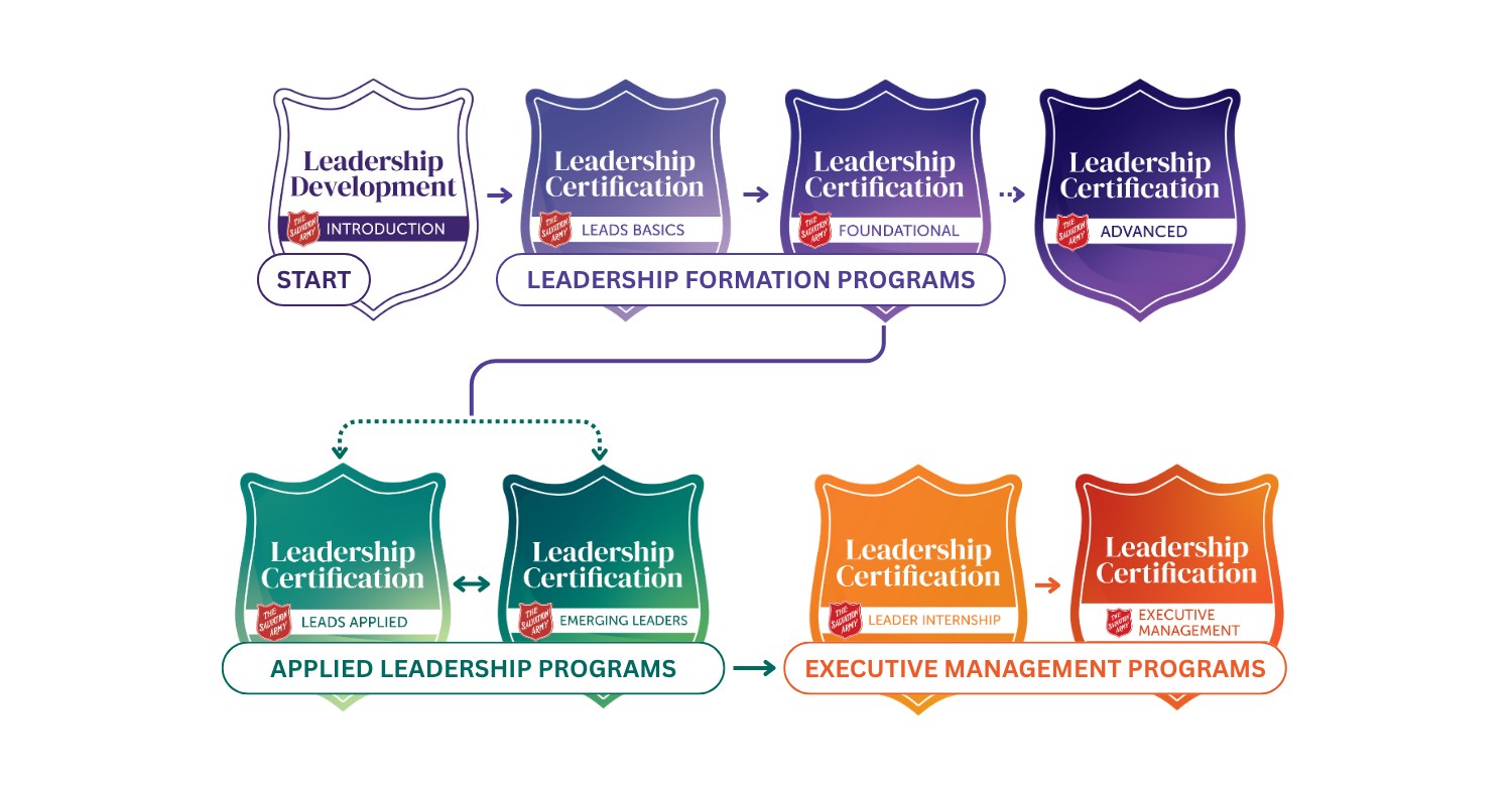 This approach keeps leadership growth in The Salvation Army mission-centered and consistent, while giving each leader the right level of development for their role and responsibilities.